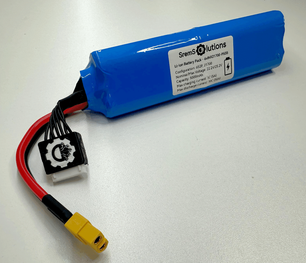 5000mAh 6S2P Li-ion baterija izrađena je od vrhunskih INR21700-P50B ćelija te je idealna za 7–10″ dronove s dugim vremenom leta. Zahvaljujući visokoj energetskoj gustoći i manjoj težini (445g) , savršena je za long-range letove.